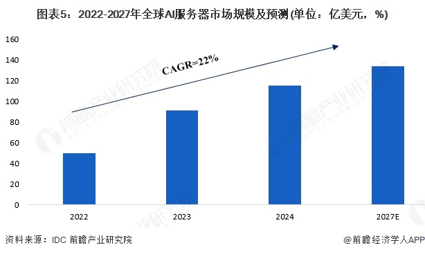 根据IDC的数据,2024年中国AI服务器市场规模将达115亿美元,2027年将达到134亿美元,2022-2027年年复合增长率达22%。随着生成式人工智能任务的不断增加,市场对于高性能和高能效的AI服务器需求将持续增长。未来的AI服务器将注重提高计算能力和处理效率,以适应更复杂、更大规模的多模态大模型应用。