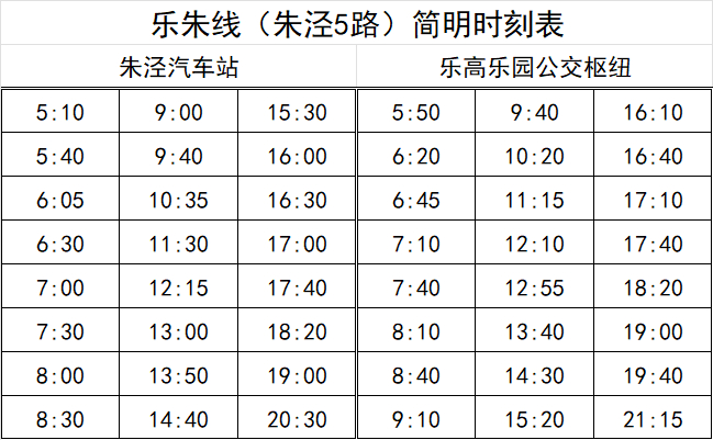 首末班时间:乐高乐园公交枢纽5:50-21:15,朱泾汽车站5:10-20:30。