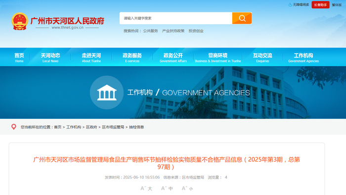 广州市天河区市场监督管理局食品生产销售环节抽样检验实物质量不合格产品信息(2025年第3期,总第97期)