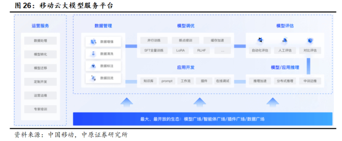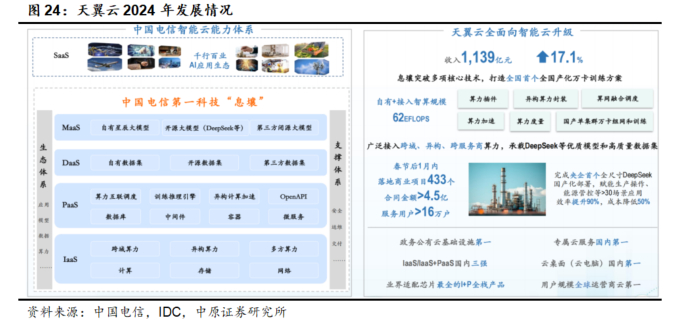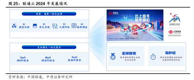 运营商聚焦工业制造、数字政府、医疗、教育、能源等关键领域,充分发挥云网融合及新一代数字技术的整合优势,推进数字技术与实体经济的紧密结合。三大运营商均全面接入DeepSeek开源大模型,实现在多场景、多产品中应用,针对热门的DeepSeek-R1模型提供专属算力方案和配套环境,助力国产大模型性能释放。