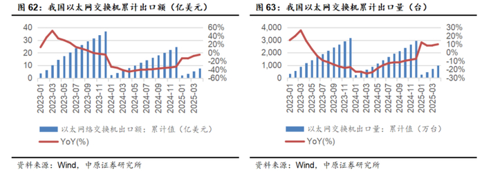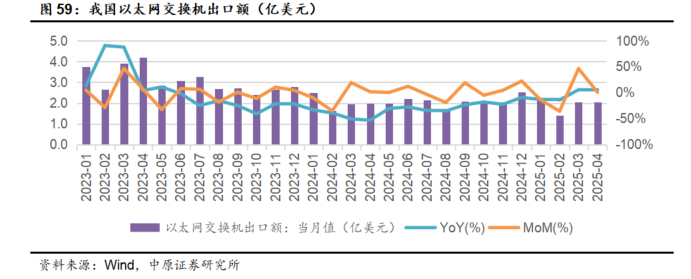 2025年1-4月,我国以太网交换机累计出口额为7.68亿美元,同比下降4.4%;以太网交换机累计出口量为990.93万台,同比增长10.1%。以太网交换机市场有望迎来复苏。