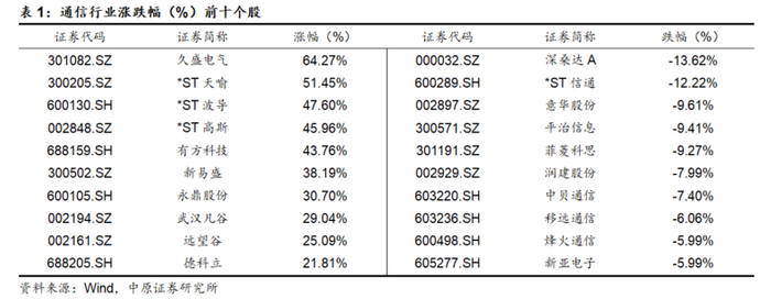 【中原通信】通信行业月报:电信运营商收入增速回升,海外算力复苏