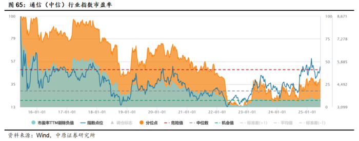 维持行业“强于大市”投资评级。截至2025年6月9日,通信行业PE(TTM,剔除负值)为20.72,处于近五年60.94%分位,近十年30.53%分位。考虑行业业绩增长预期及估值水平,维持行业“强于大市”投资评级。建议关注光通信、电信运营商、AI手机板块。1)光通信:头部云厂商2025年资本开支展望乐观,海外算力市场回暖,AI发展推动大型数据中心的建设,拉动光器件产品需求持续且稳定增长。在中美贸易摩擦的背景下,光芯片国产替代逻辑加强,业绩弹性较大。建议关注:新易盛、太辰光、仕佳光子。2)电信运营商:三大运营商接入DeepSeek,有助于提升其云服务能力,降低云业务成本,促进云业务生态建设。运营商全面参与算力网络建设,处于从数据资源化向资产化迈进的关键期,探索数据要素价值释放路径,具备科技成长属性,价值有望持续重估。建议关注:中国移动、中国电信、中国联通。3)AI手机:功能的迭代升级及AI赋能技术创新的加持或带来全新的用户体验,AI手机创新化、高端化有望带来产品平均售价的提高和毛利率的改善。建议关注:中兴通讯。