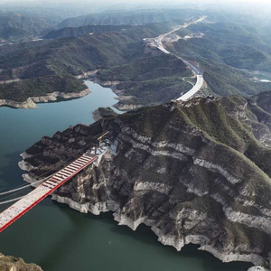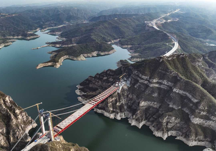 世界首座地锚式回转缆悬索桥钢桁梁吊装完成