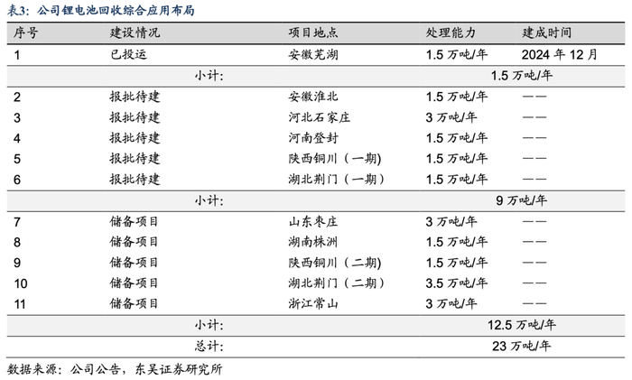 新能源:稳健发展,实现电池回收、正极、负极产业链一体化。依托海螺系水泥窑资源优势,公司迅速切入新能源材料赛道,积极布局锂离子电池产业,谋求上下游产业链材料行业发展机会。截至2024 年底公司新能源产能布局如下:1)锂电池回收:2024年新签约浙江常山项目3万吨/年,总计已签约产能23 万吨/年,其中芜湖项目1.5 万吨已于2024 年底投运;2)正极材料:安徽芜湖规划50 万吨,2022年一期项目投产共5万吨;3)负极材料:在四川乐山规划年产20 万吨,其中一期项目4万吨。从盈利来看,2024年公司新能源板块收入2.9亿元,同比增长177%,毛利0.24亿元,同比增长235%,毛利率为8.34%,较23年6.89%有所提升。未来公司将进一步研制高端产品并不断扩大市场份额,在正极材料项目上加强原料采购,重视产品性能;负极材料项目上加强工程建设,开拓市场;锂电池回收项目上强化技术优势,积极拓展回收渠道。