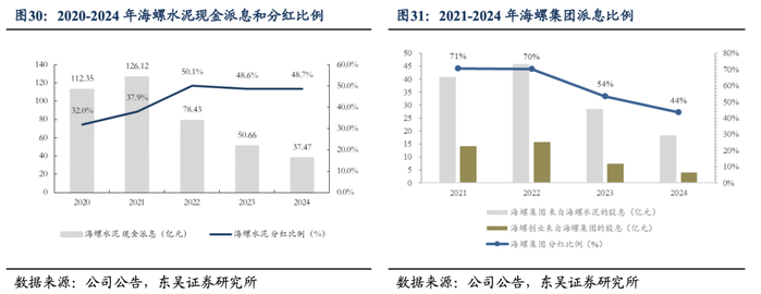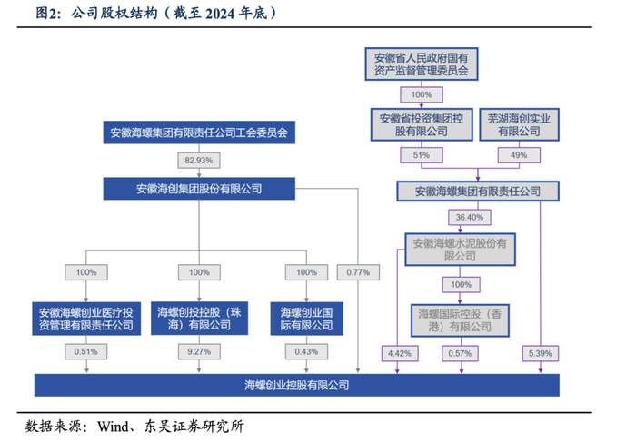 员工持股为主,安徽省国资旗下海螺集团增持至第二大股东。截至2024年12月31日,海创集团(海螺集团工会委员会持股82.93%)直接和间接持股合计10.98%,为公司大股东。海螺集团(安徽投资集团持股51%)及旗下海螺水泥合计持股比例从2023年末的6.06%增至2024年末的10.38%。同时,公司还有大量海螺员工个人持股,目前公司维持员工持股为主,无实际控制人的股权结构。员工与企业利益深度绑定形成利益共同体,建立长期稳定的利益共享和风险共担机制