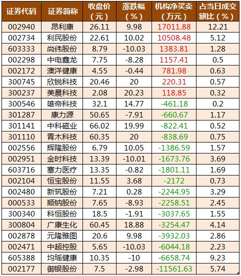 龙虎榜机构净买入7股昂利康居首