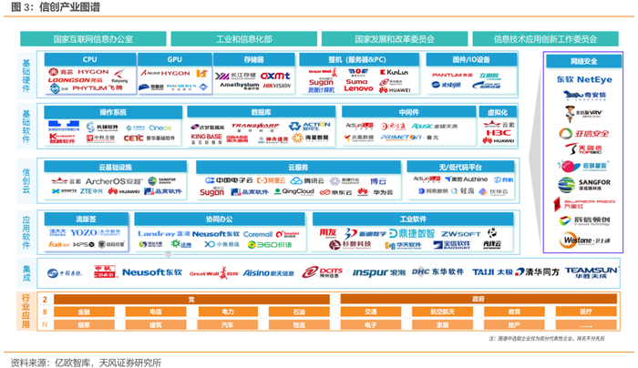 1.2. 体系完备一应俱全,信创板块涵盖硬件、基础软件和应用层