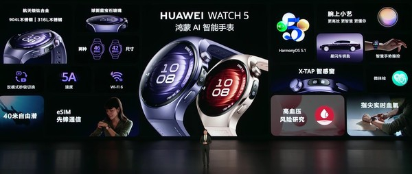 华为WATCH 5搭载X-TAP质感窗,迈入健康检测&交互新纪元,创新微米级架构,业界首发多合一超感知模组,解锁指尖健康检测;业界首发免气囊高血压风险研究;支持一触微体检,健康能力更强大,60秒即可获得报告,最多包含17项健康指标;支持健康摘要,多元数据分析,带来更科学的指导。