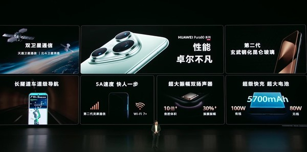 性能方面,华为Pura 80 Pro+和Ultra版本支持双卫星通信,支持第二代灵犀通信,拥有5A速度,支持熄屏一碰快付,支付更便捷;支持长隧道车道级导航,岔路不迷路;首发星闪车钥匙功能,定位和解锁精度大幅提升;支持Wi-Fi 7+;Pro以上版本搭载5700mAh电池,支持100W有线快充和80W无线快充。余承东透露鸿蒙6.0将在10-11月份进行升级。