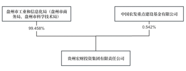 贵州宏财成立于2004年,公司立足贵州,深耕盘州,是盘州市重要的国有资产经营及市政基础设施建设主体,也是目前盘州市基建领域最大的建设平台。控股股东、实际控制人为盘州市工业和信息化局(盘州市商务局、盘州市科学技术局),持股比例为99.458%。剩余股份由中国农发重点建设基金有限公司持有。