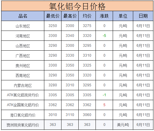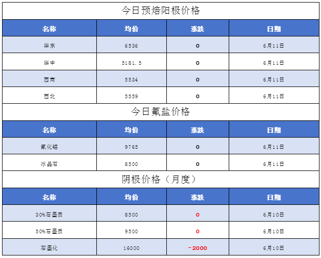 大涨!今日铝价 氧化铝 氟盐 阳极 阴极 铝锭价格 2025年6月11日