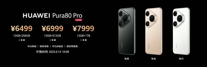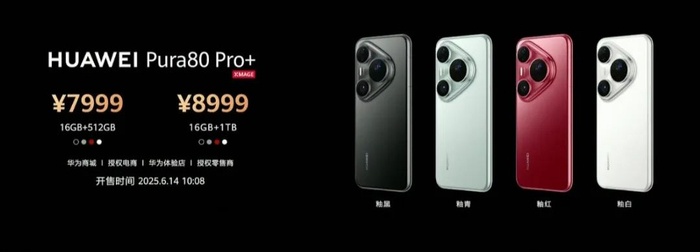 价格上,【华为Pura 80】未公布价格,预热7月开售;【Pura 80 Pro】12+256GB和上代一样 6499元,12+512GB版6999元,12GB+1TB版7999元;【Pura 80 Pro+】16+512GB版7999元,16GB+1TB版8999元;【Pura 80 Ultra】16+512GB版9999元,16GB+1TB版10999元。这波大家觉得如何?