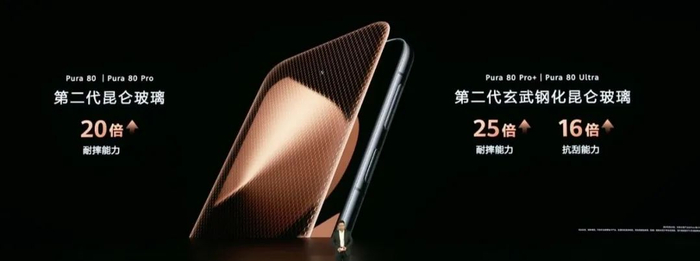 【华为Pura 80 Pro系列】Pura 80 Pro、Pura 80 Pro+、Pura 80 Ultra三款机型屏幕规格一致,均为6.8英寸2848*1276分辨率的等深四曲屏,1-120Hz自适应刷新率,460ppi,峰值亮度3000nits,1440Hz高频PWM调光,10.7亿色 P3全局色彩管理,HDR Vivid高动态显示,全系侧边指纹。不过Pura 80 Pro为第二代昆仑玻璃,Pura 80 Pro+和Pura 80 Ultra为第二代玄武钢化昆仑玻璃。