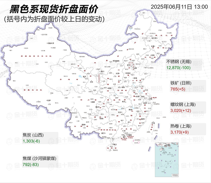 2、据中国煤炭资源网6月11日数据测算,澳大利亚远期优质一线焦煤与临汾、长治一带低硫主焦煤(S0.5 G80-85)发往河北唐山的价差为266.94元/吨,周环比收窄82.21元/吨,澳煤依然倒挂。国内焦炭价格连降三轮,目前仍无反转迹象,市场情绪依然悲观,产地煤价重心继续下移,山西地区优质低硫主焦坑口价格已降至1170-1180元/吨左右。在国内部分终端持续转售澳洲准一线资源后,海外贸易商心态转弱,叠加海外掉期持续下跌,澳煤价格支撑转弱,当下澳洲准一线焦煤价格已降至FOB181美金左右,折合国内港口库提价约1609元/吨,影响澳煤与国内煤价价差小幅收窄,但仍未扭转澳煤明显倒挂态势。