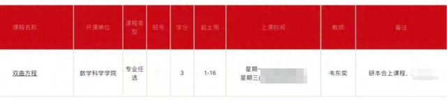 北大官网显示,韦东奕所在部门为数学科学学院的微分方程教研室,职称为研究员,从2019年底开始担任助理教授。本学期有一门“双曲方程”的课程,上课时间分别是周一和周三。