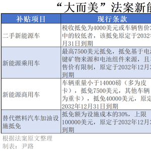 新能源车是OBBB法案调整幅度最大的部分,除极少数豁免对象,全部新能源车有关的补贴均在2025年12月31日提前到期,和IRA相比,提前7年,基本等同于法案已经通过就立即执行,是补贴削减最快、幅度最大的项目。
