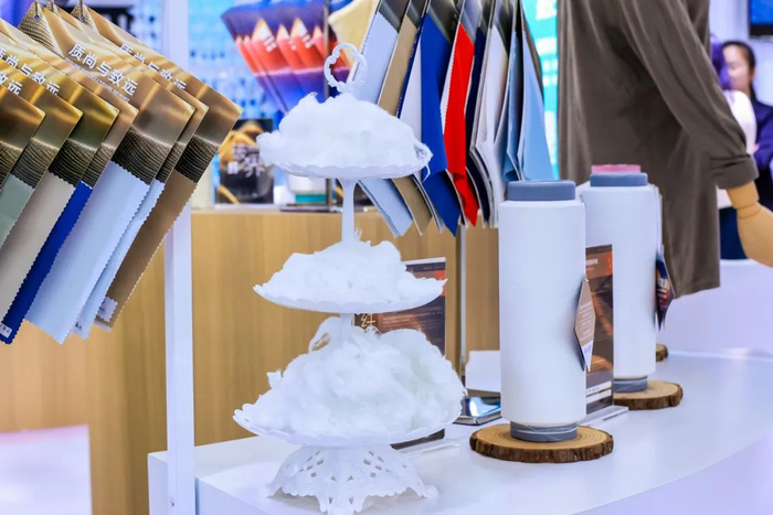 从政策导向到产业实践,绿色发展理念正深度融入经济社会各领域,绿色也已成为纺织化纤行业高质量发展的底色。在绿色纤维展区内,多家相关企业带来了自己的生物基化学纤维、循环再利用化学纤维、原液着色化学纤维等绿色产品。