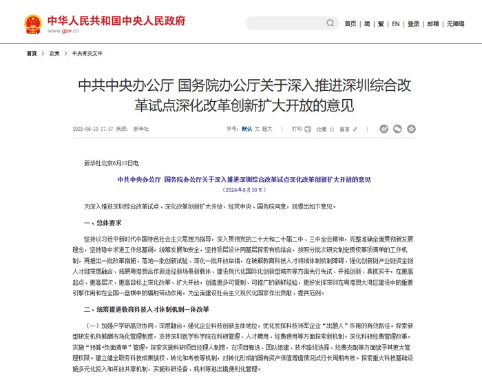 6月10日,中共中央办公厅、国务院办公厅发布《关于深入推进深圳综合改革试点深化改革创新扩大开放的意见》(下称《意见》)。其中明确指出“允许在香港联合交易所上市的粤港澳大湾区企业,按照政策规定在深圳证券交易所上市”。