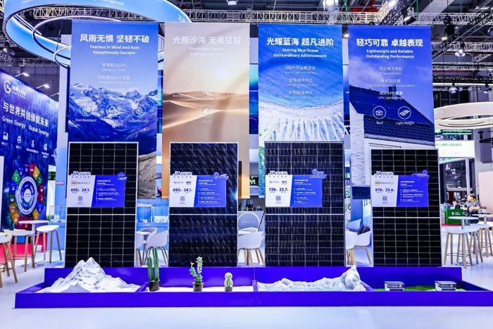 沙漠、海洋、抗冰雹、屋顶等适用极端环境及分布式细分市场的“特种”组件齐聚;DeepBlue 5.0组件领衔登场,多种前沿电池组件技术路线成果集中亮相。