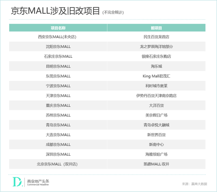 赢商研究中心统计显示,目前开业的17个京东MALL中,有11个为旧改项目,且其中多个为闲置多年的老商场。京东MALL的进入,可带动城市老旧商圈“换新颜”,节省政府自行改造的财政投入。