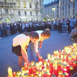 6月10日,人们在奥地利格拉茨悼念枪击事件遇难者。新华社发