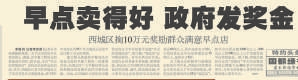为了落实早餐工程这一市政府为民办实事的项目,北京为此没少动脑筋:向社会公开征集早餐新品种,入选的开发单位或个人可获3万元至5万元奖金;推出免费热线,市民对早餐工程有意见和建议均可打电话反映给政府主管部门;对在社区便利店增加早餐经营项目并达标的网点,每家给予8000元的资金补助,用于购置相关设施设备等。(2003年4月22日《北京日报》5版,《早餐工程监督热线开通》)