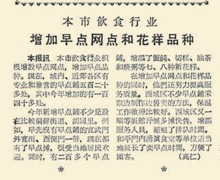 改革开放后,随着城市人口和双职工的增加,出门吃早点的人越来越多,“长龙”一度越排越长,群众意见很大,增加早点供应网点迫在眉睫。