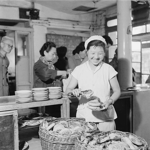 1960年,北新桥九道湾食堂准备代加工的早点主食。冯文冈摄
