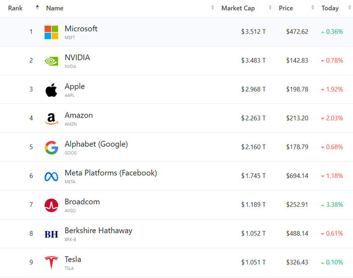 大型科技股多数走低,(按市值排列)微软涨0.36%,重回全球股王,英伟达跌0.78%;苹果跌1.92%,总市值跌破3万亿美元;亚马逊跌2.03%,谷歌C跌0.68%,Meta跌1.18%,特斯拉涨0.1%。