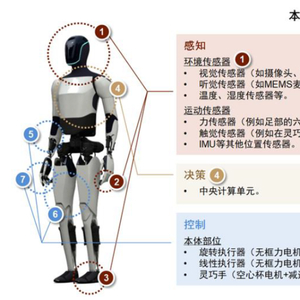 具身智能(Embodied artificial intelligence,EAI)由“本体”与“智能体”构成,以“感知决策、物理实体、环境交互”为主要特征。与智能汽车类似,具身“智能体”包括“感知、决策、控制”三个主要环节,并需要内外部通信传输的支持。1)感知:具身智能交互世界的窗口,通过传感器收集环境与自身状态信息,作为决策环节的依据。2)决策:根据感知的信息以及任务目标,对自身行为进行规划决策,并向控制模块发出指令。3)控制:将决策指令转化为实际操作,实现与物理世界的互动。4)传输:强调低时延、多连接、连续性能力。