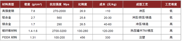 结构件类似于人形机器人的肌肉和骨骼;人形机器人各部位材料选择多元,轻量化、高强度和高精度是主要目标。援引化工组《人形机器人可能带来哪些新材料机会》,人形机器人材料选用多元:PEEK、碳纤维复合材料、镁铝合金等轻量化材料在骨骼框架和机械臂中广泛应用,能够减轻机器人自重并提升运动性能;钕铁硼磁材、40Cr合金钢和GCr15轴承钢等高强度材料则用于执行器和关节部位,确保高精度和高负载能力;不锈钢和高分子纤维用于灵巧手的腱绳传动系统,提供高柔性和精细操作能力;ABS工程塑料和聚碳酸酯(PC)则用于外壳和护板,兼具耐冲击性和美观性。这些高性能材料的综合应用,使人形机器人在运动效率、能耗表现和安全性方面实现了提升,为未来的广泛应用奠定了基础。