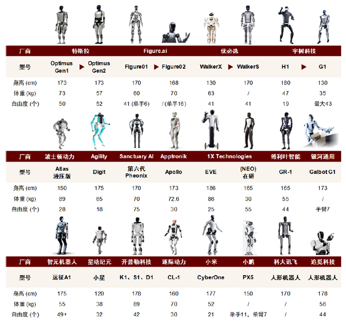 资料来源:人形机器人洞察,各公司官网,中金公司研究部