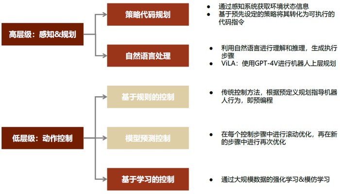 图表17:机器人“大小脑”分层架构下不同层级模型的职能分工