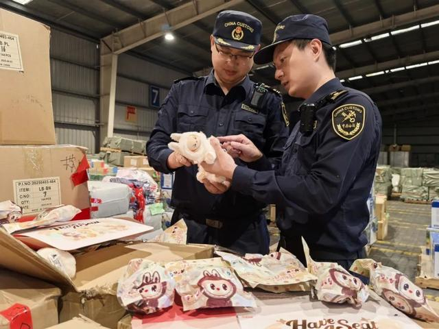 6月10日,记者从宁波海关获悉,宁波海关所属北仑海关查验关员在对三批商品进行查验时,发现有未申报的盲盒、毛绒玩具等商品,它们部分外包装上印有“泡泡玛特”的品牌标识,均是泡泡玛特当前最热门的LABUBU系列。