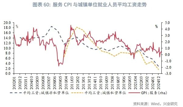 服务价格方面,主要受到劳动力工资成本的影响。近年城镇单位就业人员平均工资增速下行,作为生活性服务业的主要提供者,2024年私营单位就业人员平均工资增速录得1.7%,为2009年有统计以来新低。考虑到经贸不确定性对于就业和收入的扰动,下半年服务价格仍旧面临压力。