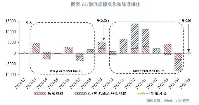 从降准操作来看,预计年内仍有25bp-50bp的降准空间。从缴准基数的增长来看,年内降准空间为25bp-50bp,降准时点可能在第三季度末至第四季度。不过,若央行通过MLF、买断式逆回购、买卖国债等方式加大中长期流动性投放,降准时点可能更加灵活。需要指出的是,5月降准落地后,大型银行、中型银行和小型银行的存款准备金率分别为7.5%、5.5%和5.0%,中型银行距离5%的存款准备金下限仅有50bp空间。考虑到逆周期财政政策发力背景下,银行体系增加长久期资产配置,降准仍是银行补充中长期流动性的重要来源。