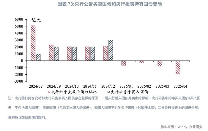 从公开市场操作来看,下半年买卖国债有望重启,时点可能在第三季度政府债供给高峰。2025年1-4月,央行对中央政府债权累计下降3600亿元左右,可能表明央行2024年买入的国债部分到期。《2025年第一季度货币政策执行报告》指出,暂停买卖国债的考虑是“避免影响投资者的配置需要”,未来将“关注国债收益率的变化,视市场供求状况择机恢复操作”,因而合意的时点可能是国债供大于求且国债收益率不存在强烈一致下行预期的时期。从政府债供给来看,第三季度是政府债净融资的高峰,国债到期规模低于第二季度。从稳长端利率的视角,年初以来市场抢跑的降息预期趋于收敛,10年国债收益率自年初以来保持在1.60%上方,5月降息落地且关税暂缓后,国债收益率出现了小幅上行,IRS隐含降息预期从20bp左右收窄至10bp左右。