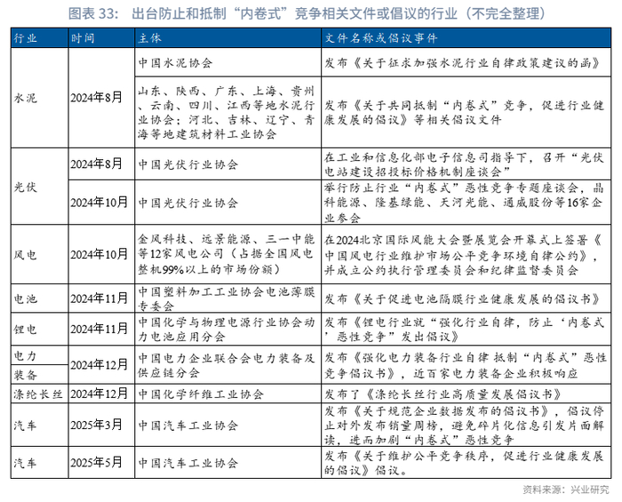 根据我们在2025年3月25日发布的《整治“内卷式”竞争影响几何?》中的判断标准,当前农副食品加工、石油煤炭加工、化学原料及制品、非金属制品、汽车制造、电气机械、电子设备7个行业当前“内卷”的程度可能更深,其中包含了如汽车制造、农副食品制造等投资增速领先的行业。2016-2017年供给侧改革过程中,产能利用率较低的煤炭、钢铁等行业的投资增速一度转负,对整体投资形成拖累。从这一轮较早发布整治“内卷式”竞争相关信息的风电光伏、水泥行业的投资来看,电气机械制造业投资累计同比自2024年8月便进入负增区间,2024年下半年非金属矿制品业投资累计同比亦逐步下降,并于2025年3月进入负增区间。