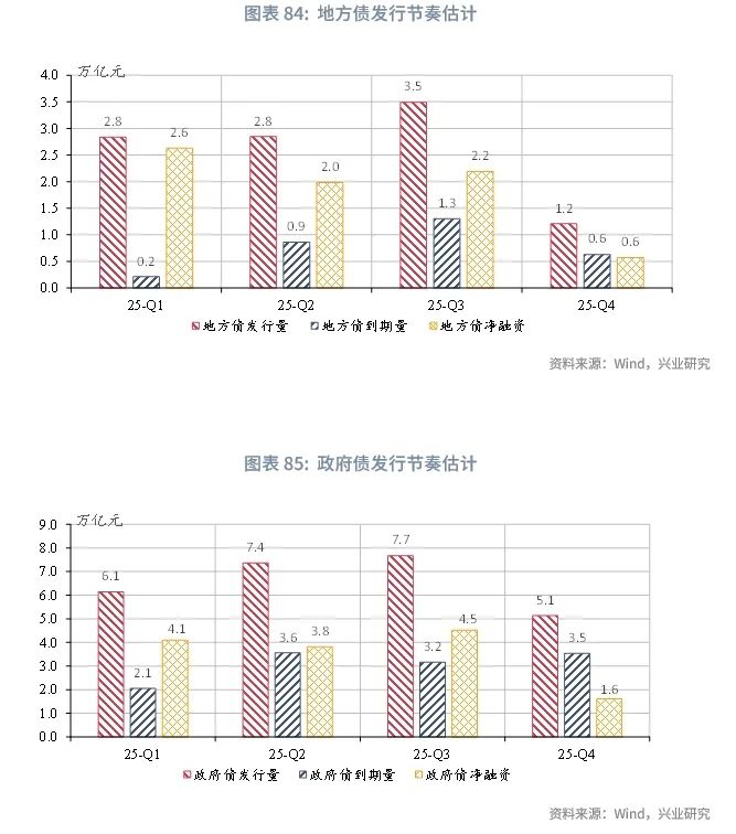 节奏方面,与2024年同期相比,出口、国债发行、以旧换新补贴均呈现出前置的特征,使第四季度面临更大的增长压力,财政支出节奏可能适度调整,以平滑年内增长。