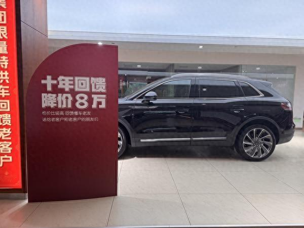 在北京奥吉通林肯中心内,一块“十年回馈,降价8万元”的标语格外醒目。店内销售顾问胡华表示,优惠8万元的是老款航海家车型,新款航海家车型的优惠力度在6万至10万元。此外,官方指导价更低的冒险家车型综合优惠最高也能达到8万元。