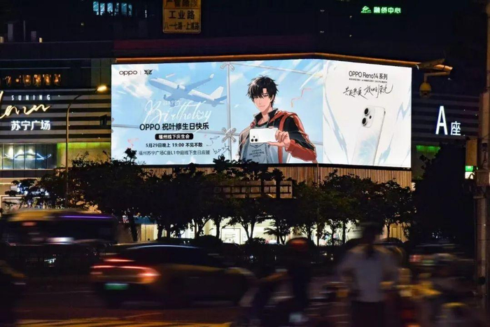 在品牌联名活动方面,与OPPO的联名推出限定礼盒产品,其中OPPO的38家门店被打造成叶修生日会的主题店,在杭州西湖更是上演了圣地巡礼活动。