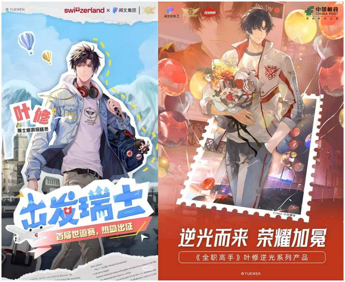 文旅方面,2024年和瑞士国家旅游局合作,推出了叶修作为“瑞士旅游探路员”的特别企划,并于2025年官宣打卡路线,联合飞猪推出了《全职高手》圣地巡礼活动——苏黎世之约。
