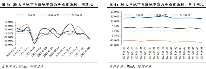 (1)30大中城市商品房销售情况:2025年6月2日至2025年6月8日,30大中城市商品房成交面积为141.72万平方米,环比减少33.35%,同比减少18.14%。截至2025年6月8日,30大中城市商品房成交面积累计同比减少2.96%。
