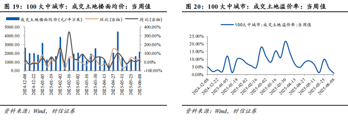 2025年6月2日至2025年6月8日,100大中城市成交土地楼面均价为2124.00元/平方米,环比上涨32.42%,同比上涨21.51%。2025年6月2日至2025年6月8日,100大中城市成交土地溢价率为0.80%,相比上周下降3.10pct。