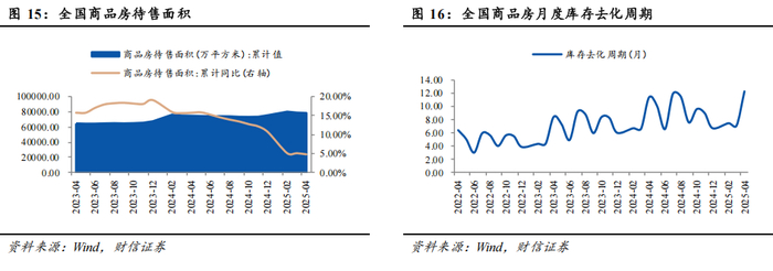 (2)月度商品房库存情况:截至2025年4月,全国商品房待售面积为78142.00万平方米,累计同比增加4.80%;4月商品房销售面积为6392.39万平方米,库存去化周期为12.22个月。
