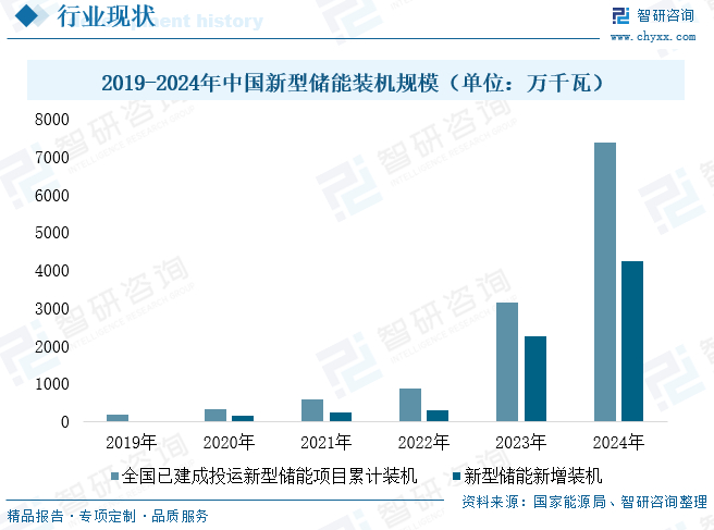 近年来,在"双碳"战略推动下,以风电、光伏为代表的新能源产业蓬勃发展,带动新型储能行业进入快速增长期。数据显示,2024年我国新型储能产业保持强劲发展势头,全年新增装机规模突破7000万千瓦大关。截至2024年末,全国已投运新型储能项目累计装机规模达到7376万千瓦,较上年同期大幅增长130%以上,平均储能时长提升至2.3小时,较2023年延长0.2小时。从技术路线来看,锂离子电池仍占据市场主导地位,同时压缩空气储能、全钒液流电池、钠离子电池等新型储能技术取得重大突破,多个百兆瓦级示范项目相继落地,重力储能、飞轮储能等创新技术也实现规模化应用,呈现出多元化发展的良好态势。