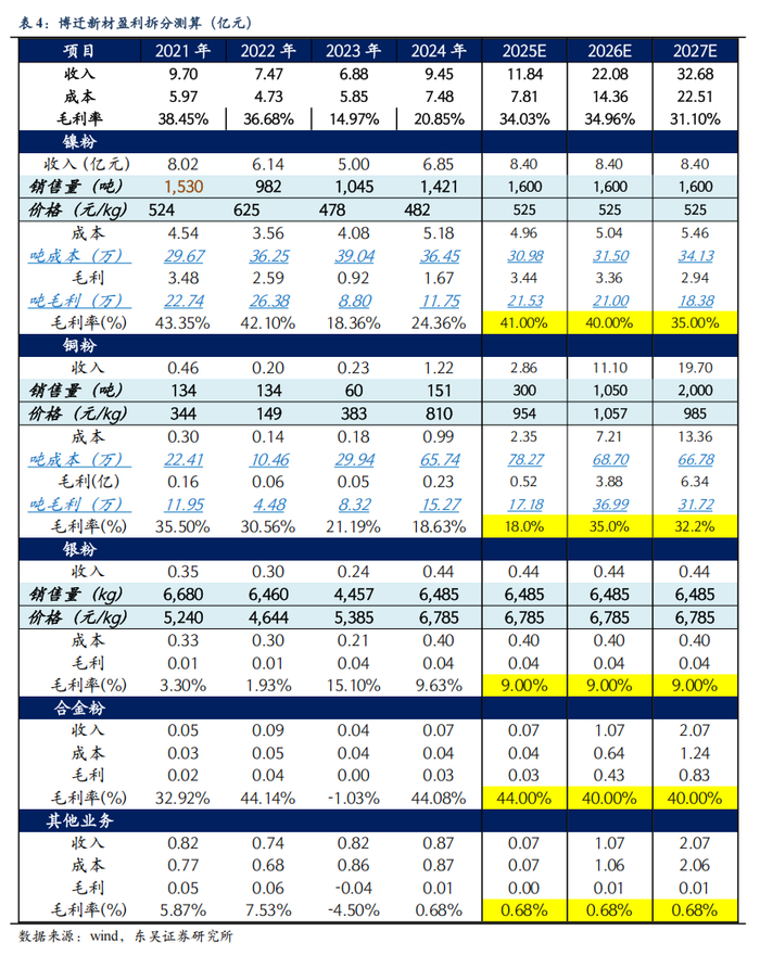 量利催化改善,预计镍粉显著修复。2025年公司镍粉销量有望恢复至1500-1600吨(接近2021年水平),叠加产品结构优化,预计镍粉业务毛利率亦有望修复至2021年水平,整体持续复苏。