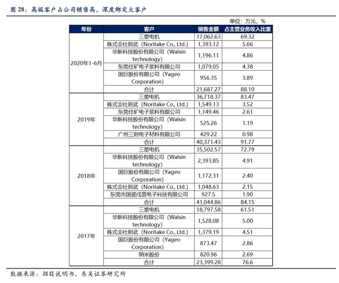 公司凭借技术优势锁定MLCC头部客户,深耕下游形成 "金字塔型"客户结构。