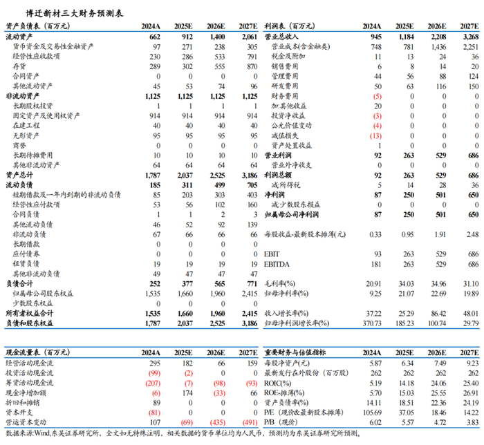 博迁新材三大财务预测表